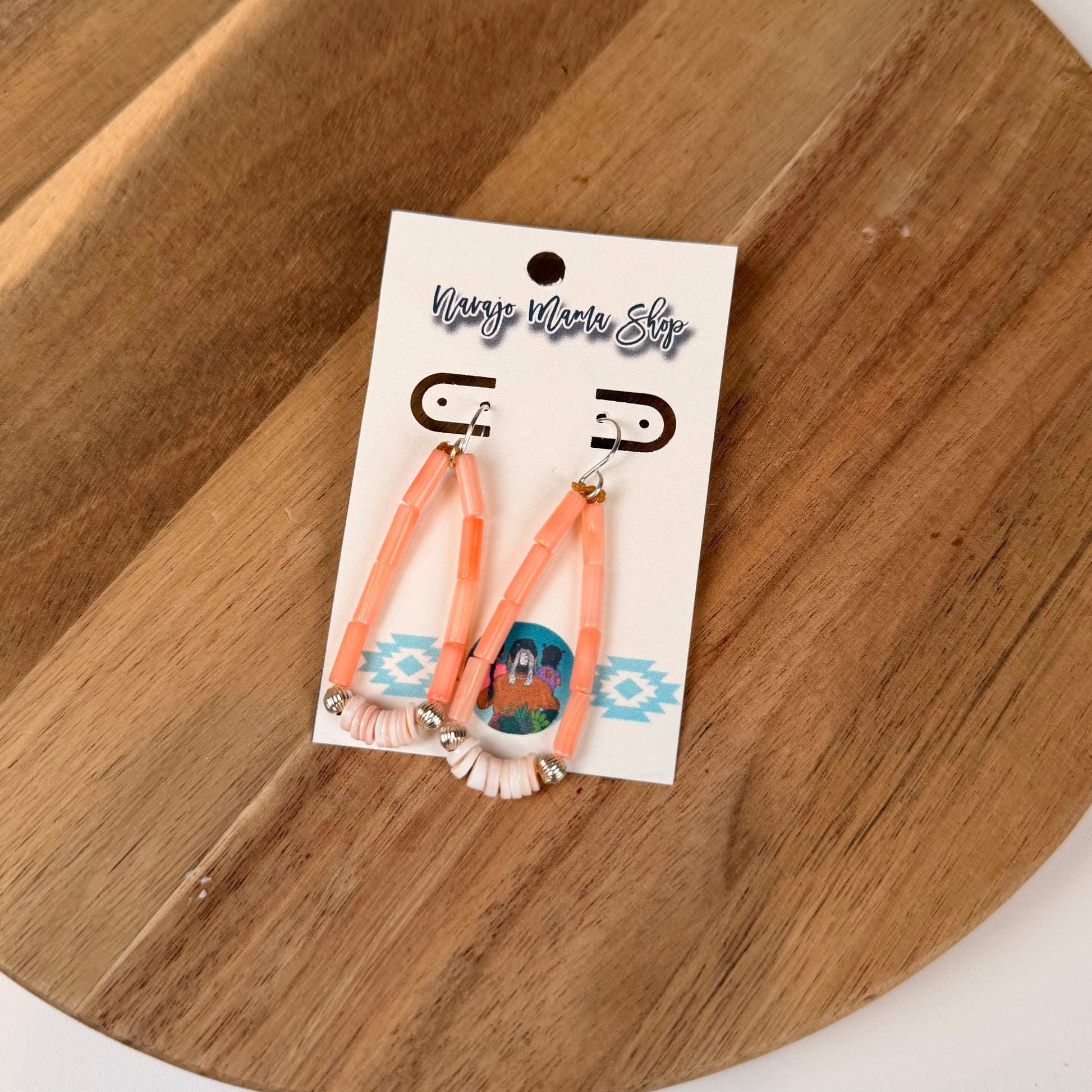 Made of light pink dyed coral and red lip shell on sterling silver findings