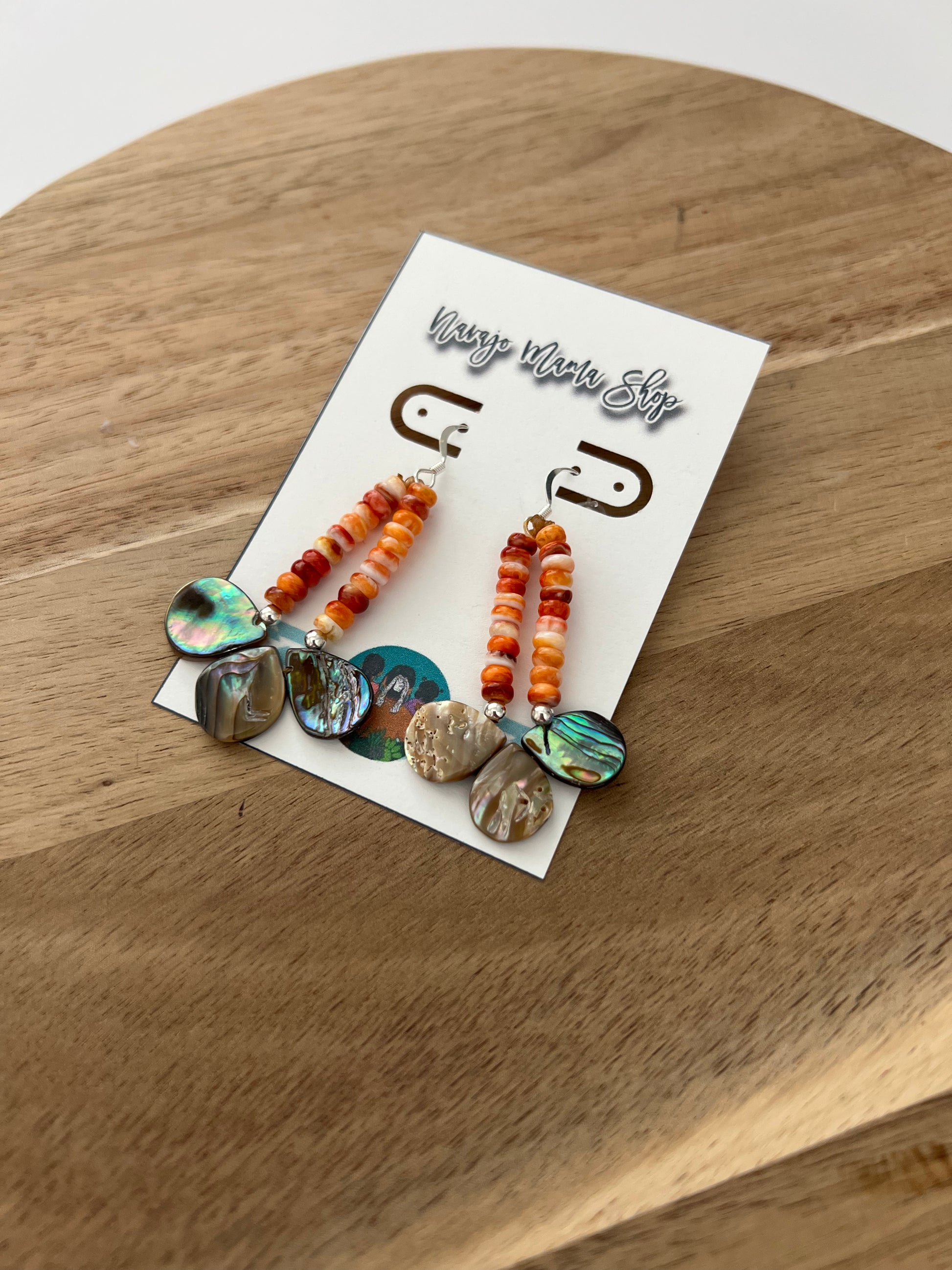 Made of orange spiny oyster and abalone on sterling silver fish hooks - mini earrings